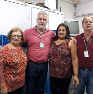Foto: Ao lado de alguns amigos de trabalho da Compesa, onde desempenhou um papel fundamental por um período de 38 anos ininterruptos.